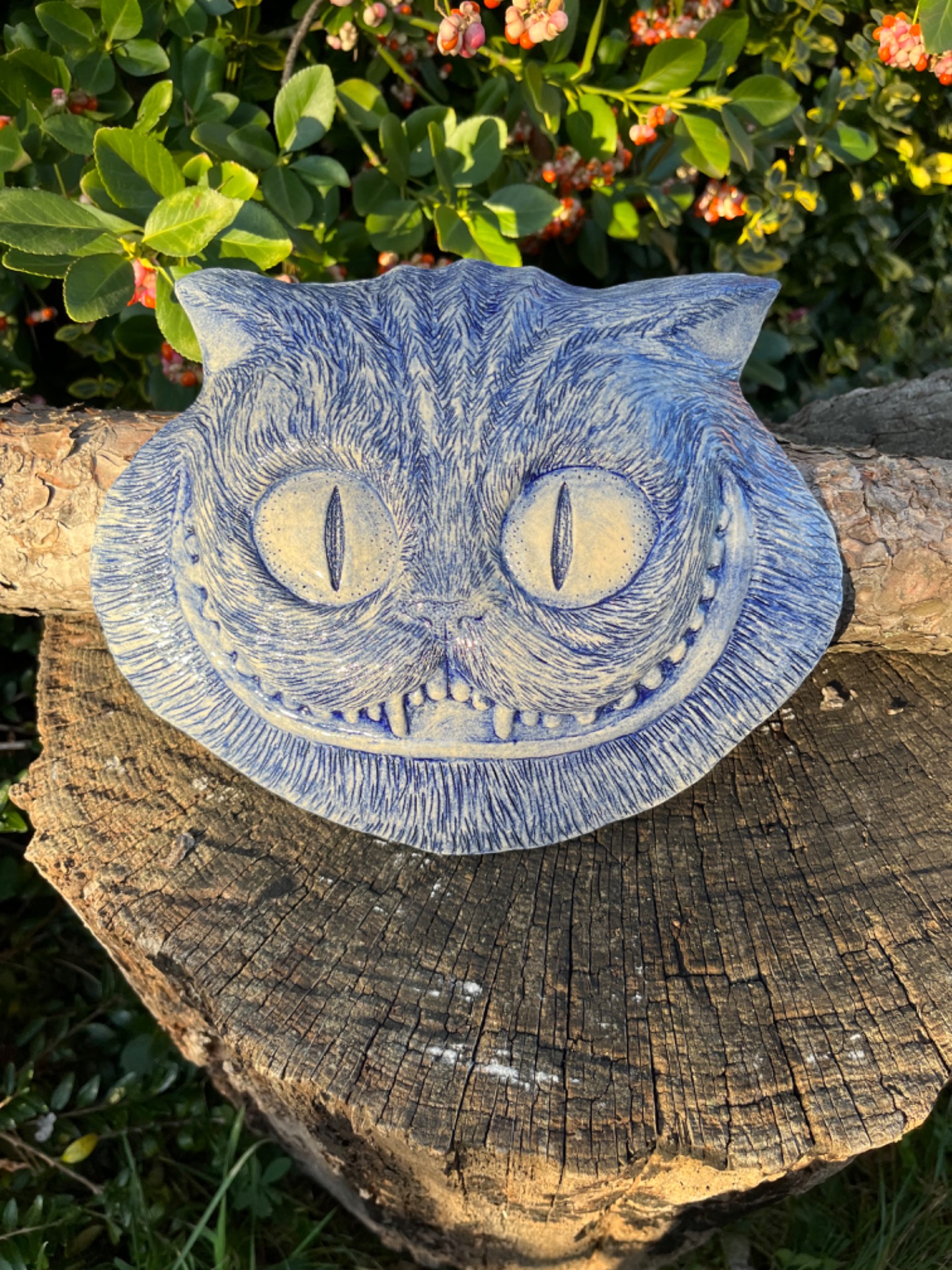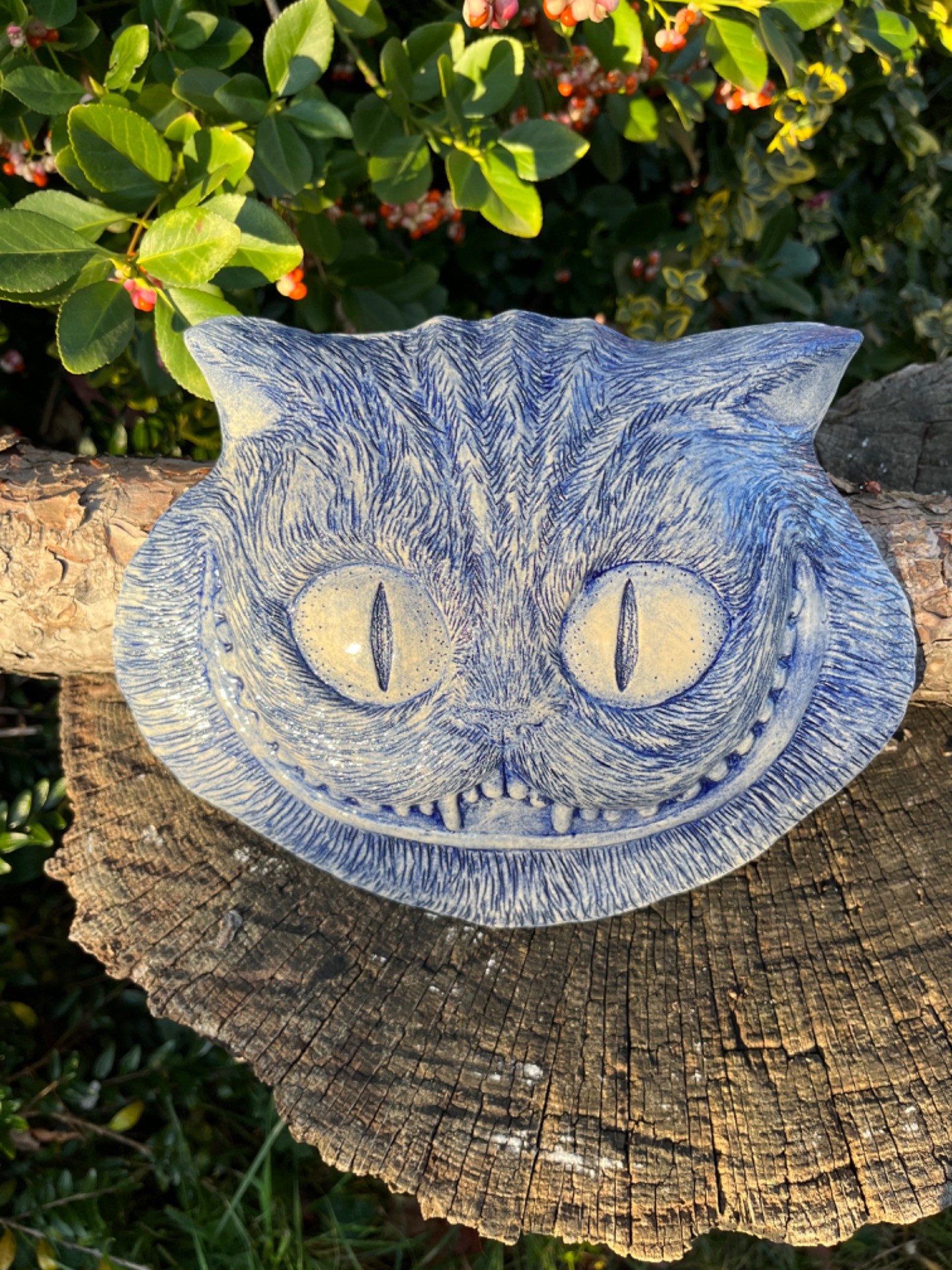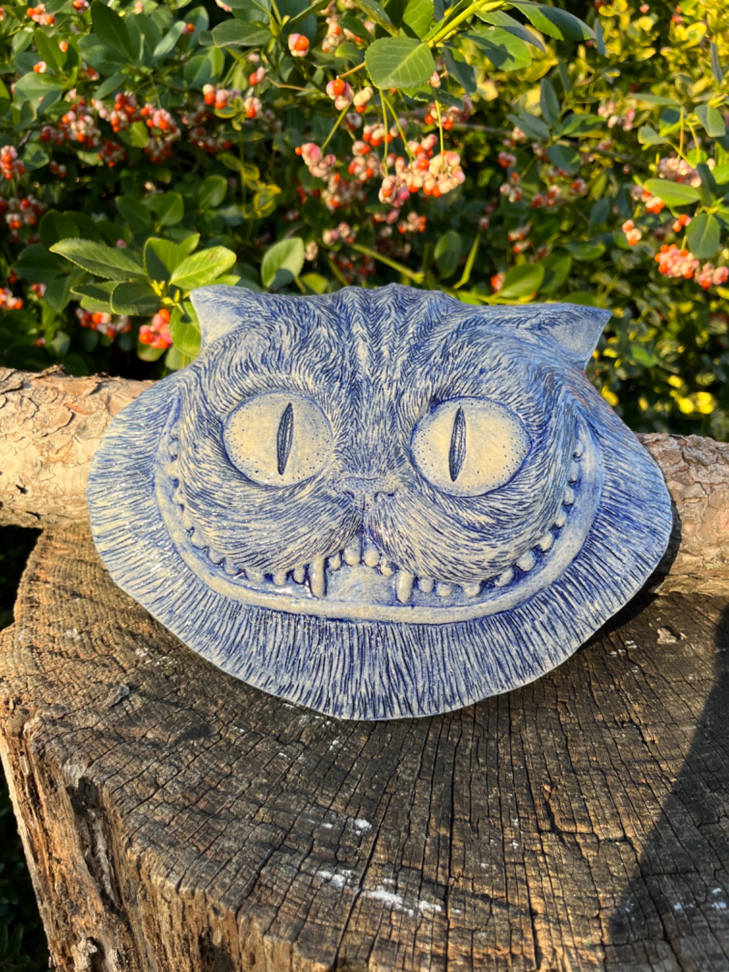 Znáte ji? Tu neustále proměnlivou bytost jejíž hlava se vznáší a vlní ve vzduchu? Závěsný porcelánový reliéf na motiv kočky Šklíby inspirovaný Alenkou z říše divů. Mrazuvzdorný, vhodný do interiéru i exteriéru. v-18cm, š-23cm.