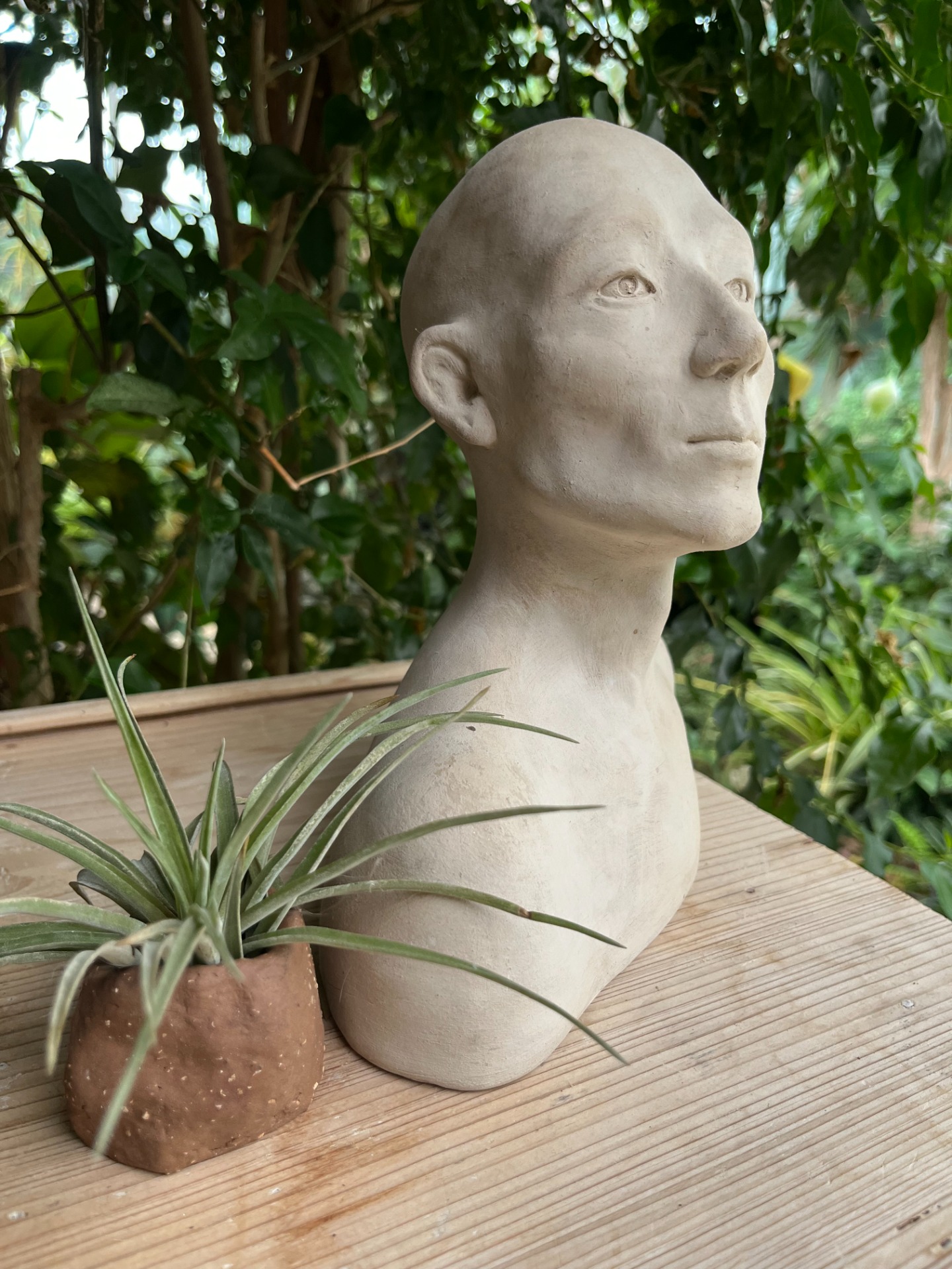 Vymodelujeme zmenšenou hlavu i s rameny. Vysvětlíme si anatomické principy a techniky modelování. Tváři dáme výraz dle vaší fantazie. Výrobek vydutíme a zaretušujeme. Pak vám jej mohu naglazovat transparentní glazurou a nebo se domluvíme na lekci glazování.