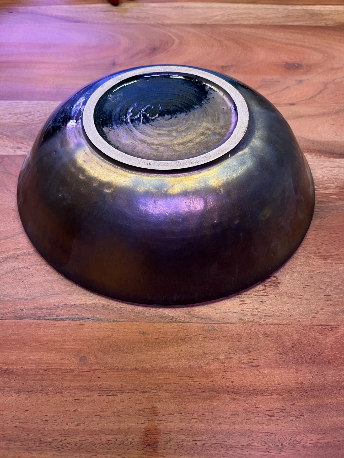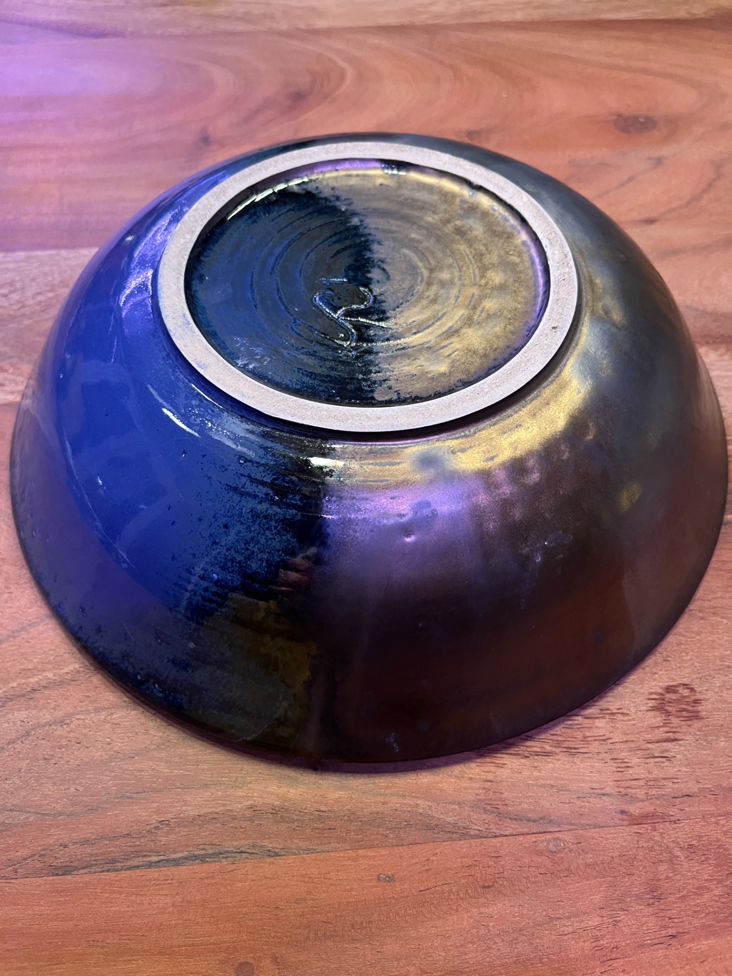 Vevnitř s jemnou perletí a zvenku snoubící se zlatá s nebeskou modří. Mísa ze které chutná cokoli. Průměr 25cm, v-6,5