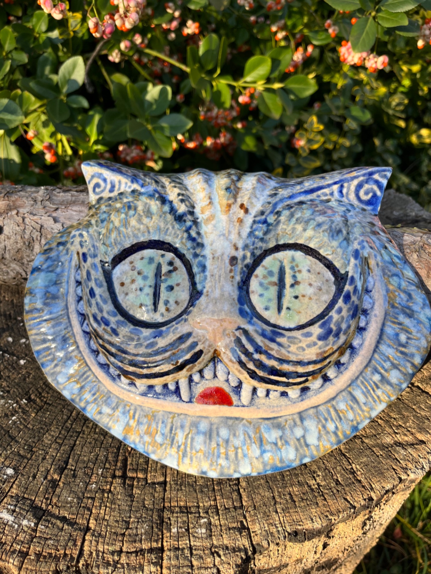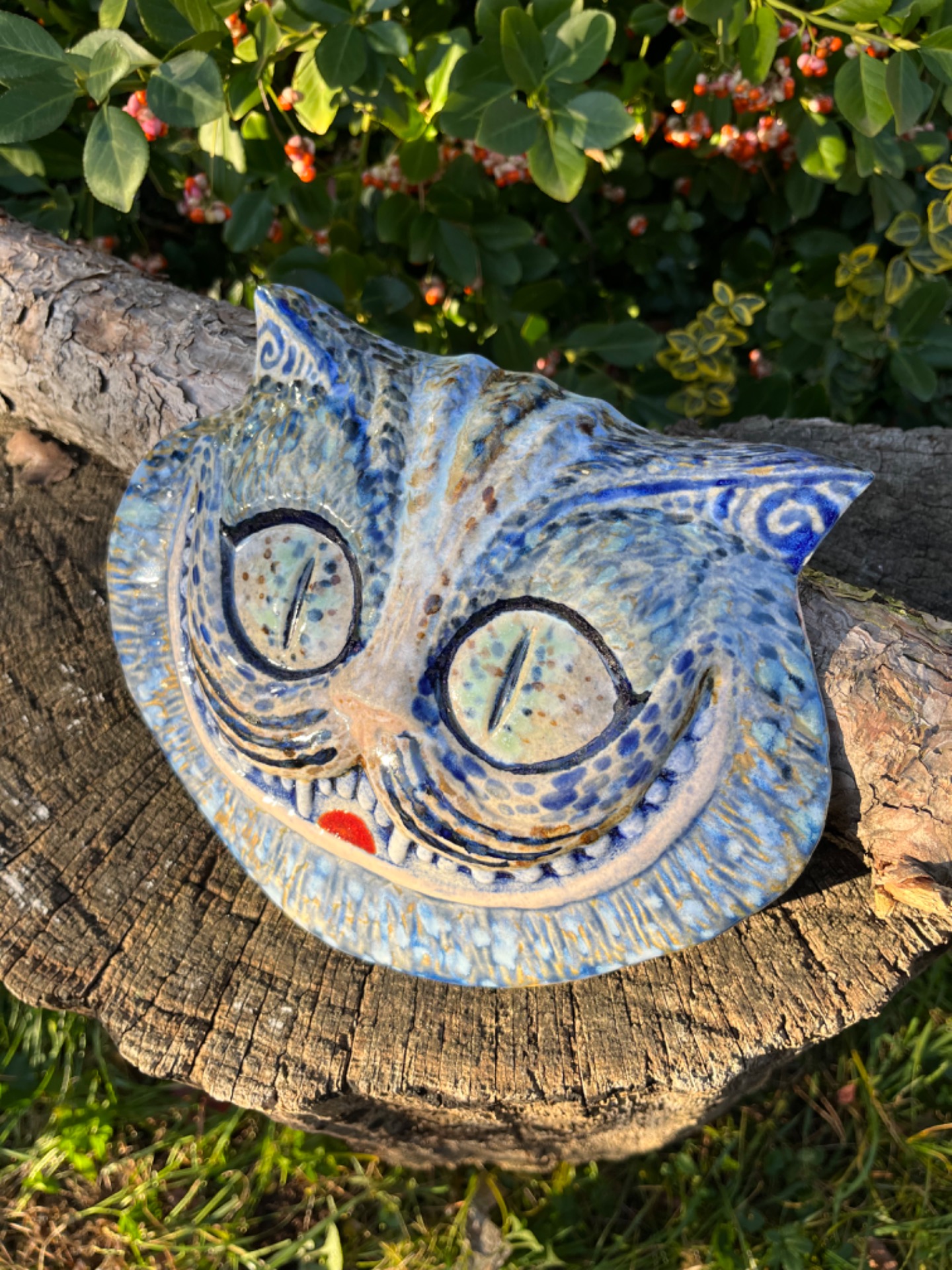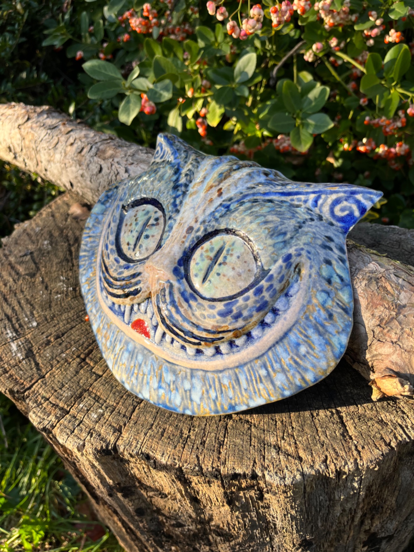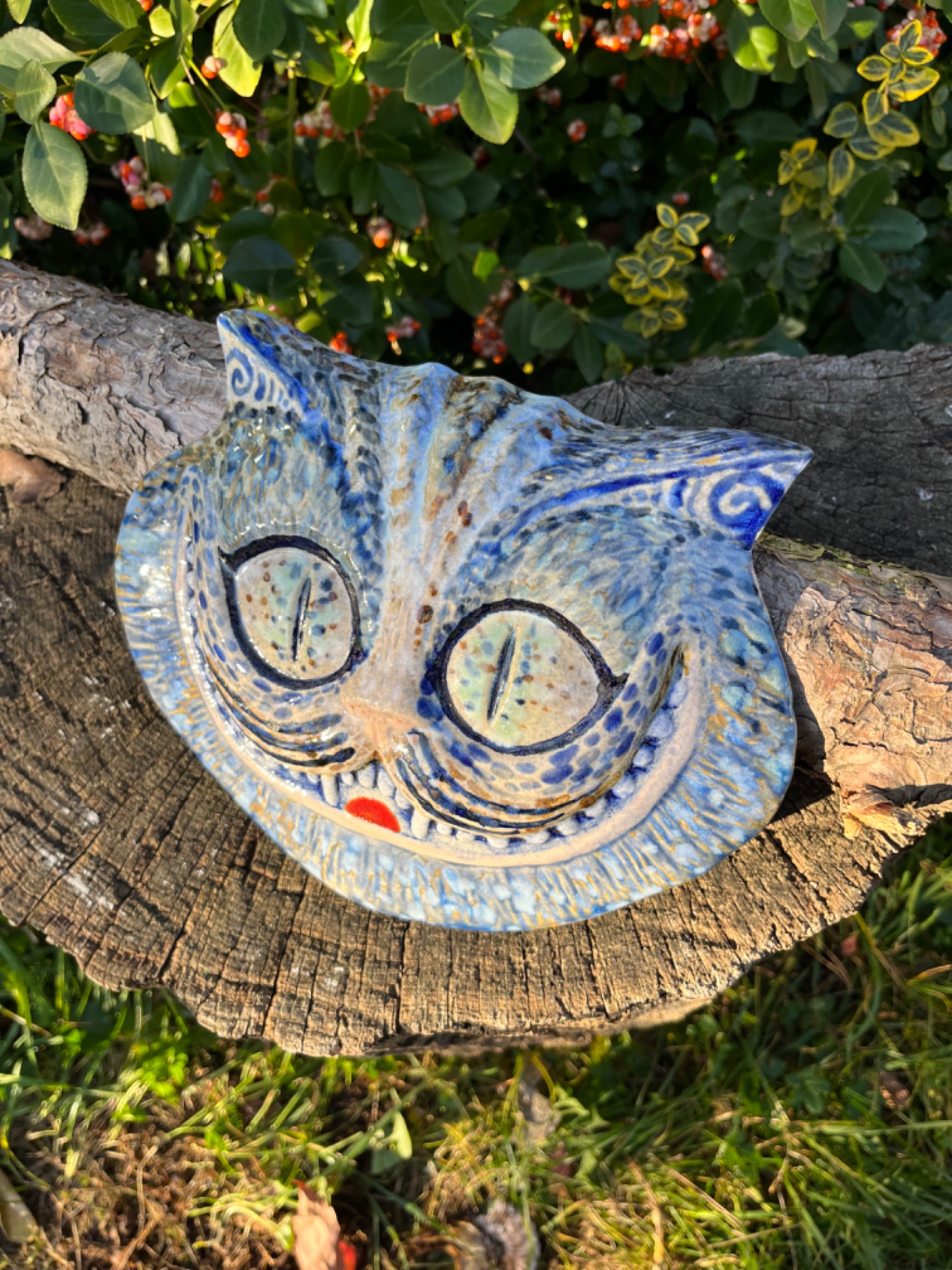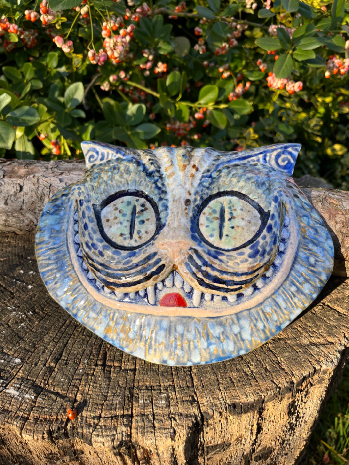 Znáte ji? Tu neustále proměnlivou bytost jejíž hlava se vznáší a vlní ve vzduchu? Závěsný porcelánový reliéf na motiv kočky Šklíby inspirovaný Alenkou z říše divů. Mrazuvzdorný, vhodný do interiéru i exteriéru. v-18cm, š-23cm.